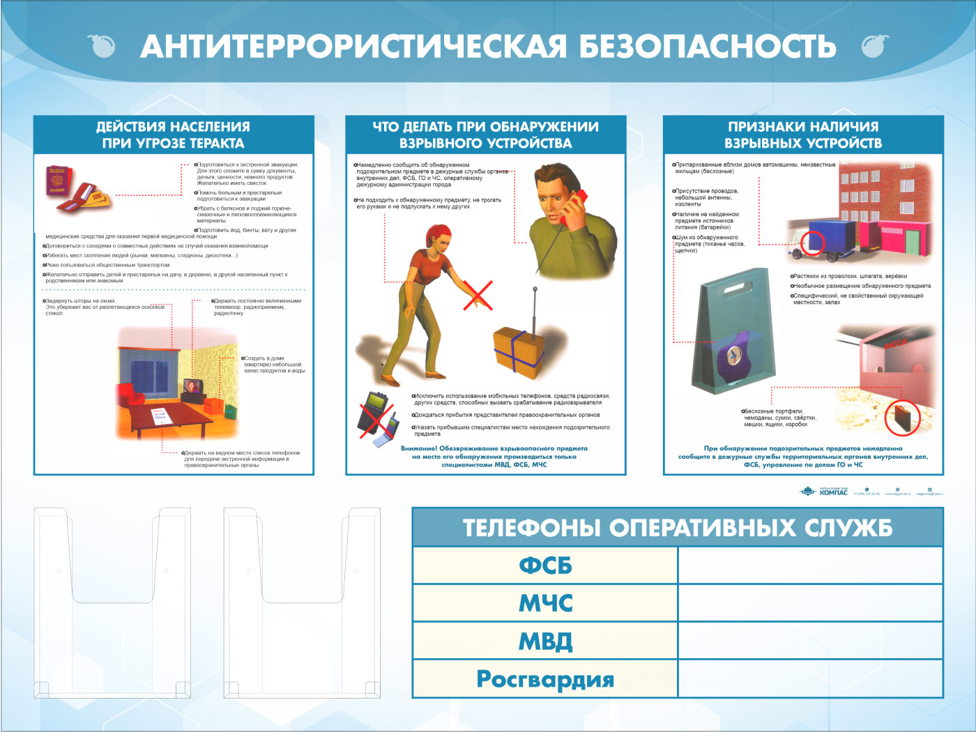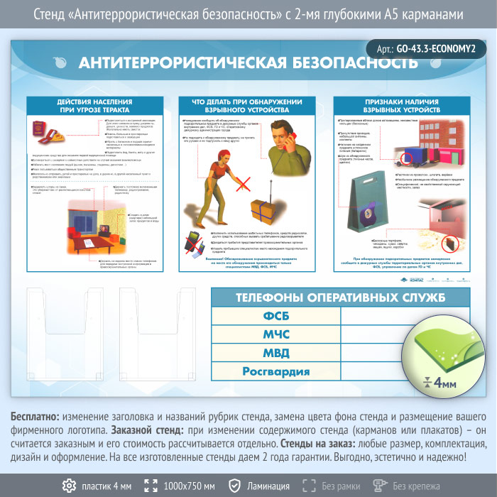 Стенд «Антитеррористическая безопасность» с 2-мя глубокими А5 карманами (GO-43.3-ECONOMY2) в Магнитогорске купить