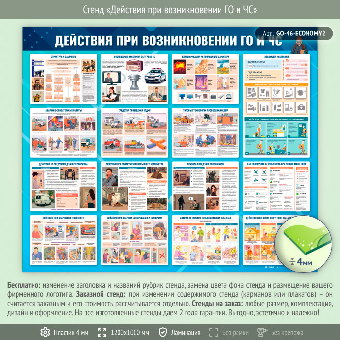 Стенд «Действия при возникновении ГО и ЧС» (GO-46-ECONOMY2) в Магнитогорске купить