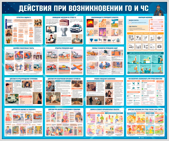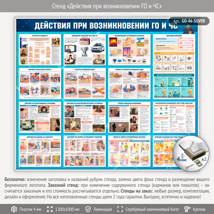 Стенд «Действия при возникновении ГО и ЧС» (GO-46-SILVER) в Магнитогорске купить