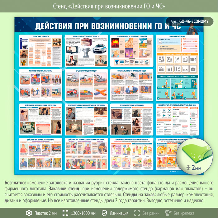 Стенд «Действия при возникновении ГО и ЧС» (GO-46-ECONOMY) в Магнитогорске купить