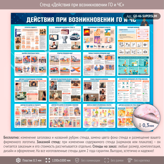 Стенд «Действия при возникновении ГО и ЧС» (GO-46-SUPERSLIM) в Магнитогорске купить