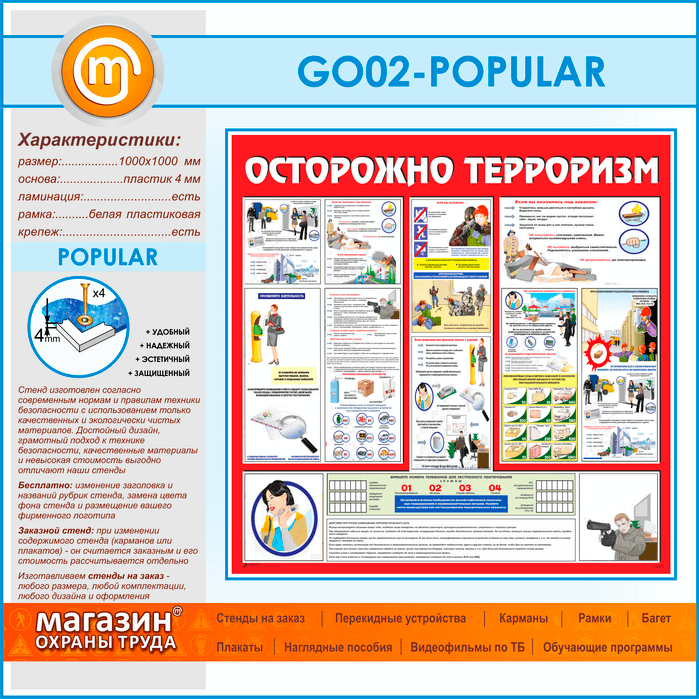 Стенд «Осторожно терроризм!» (GO-02-POPULAR) в Магнитогорске купить