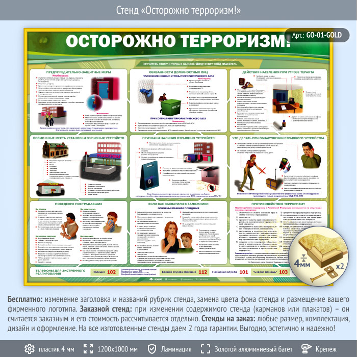 Стенд «Осторожно терроризм!» (GO-01-GOLD) в Магнитогорске купить
