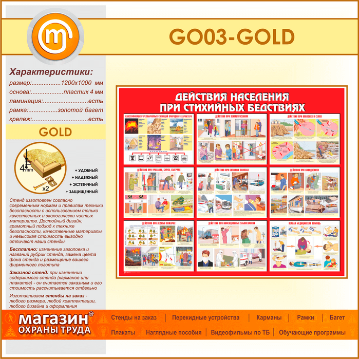Стенд «Действия населения при стихийных бедствиях» (GO-03-GOLD) в Магнитогорске купить