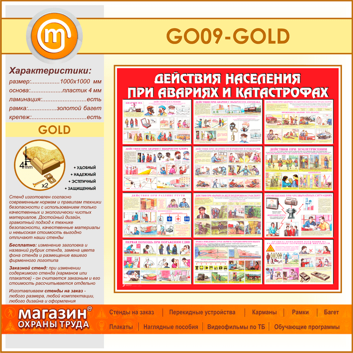 Стенд «Действия населения при авариях и катастрофах» (GO-09-GOLD) в Магнитогорске купить