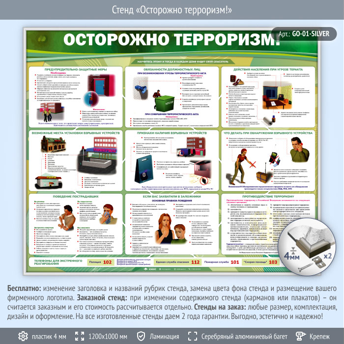 Стенд «Осторожно терроризм!» (GO-01-SILVER) в Магнитогорске купить