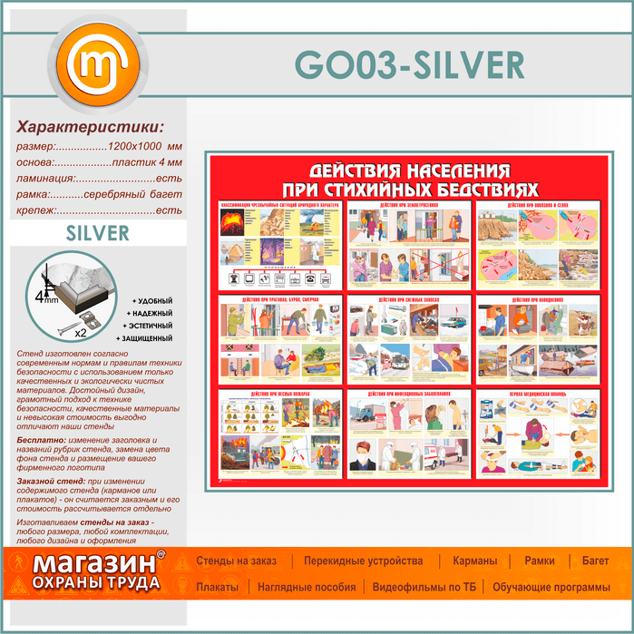 Стенд «Действия населения при стихийных бедствиях» (GO-03-SILVER) в Магнитогорске купить