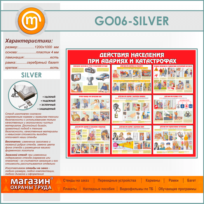 Стенд «Действия населения при авариях и катастрофах» (GO-06-SILVER) в Магнитогорске купить