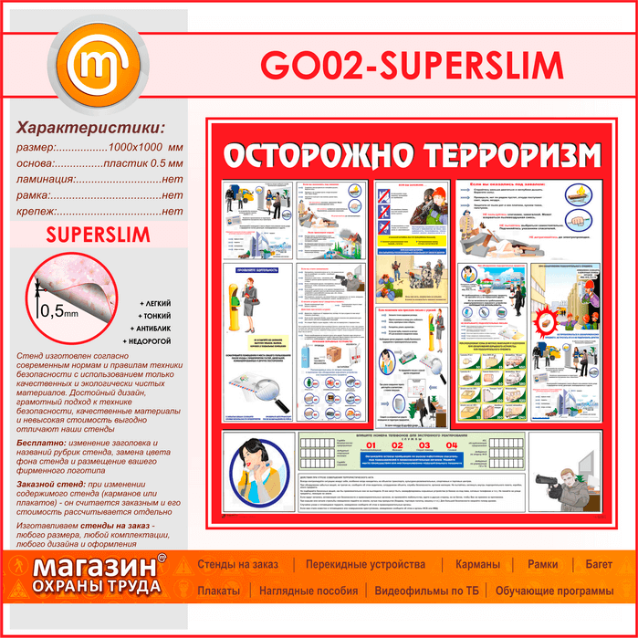 Стенд «Осторожно терроризм!» (GO-02-SUPERSLIM) в Магнитогорске купить