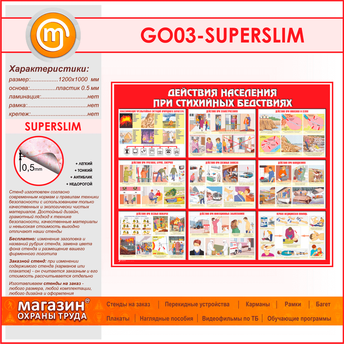 Стенд «Действия населения при стихийных бедствиях» (GO-03-SUPERSLIM) в Магнитогорске купить