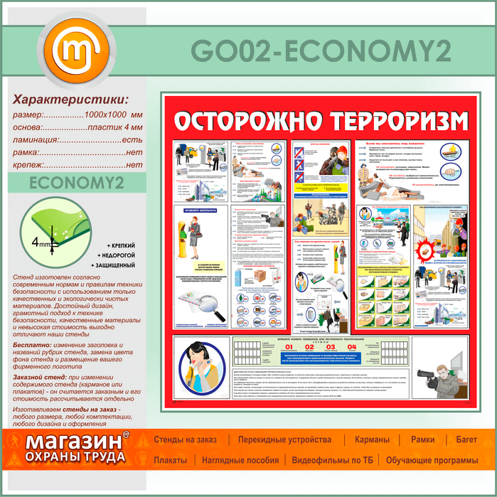 Стенд «Осторожно терроризм!» (GO-02-ECONOMY2) в Магнитогорске купить