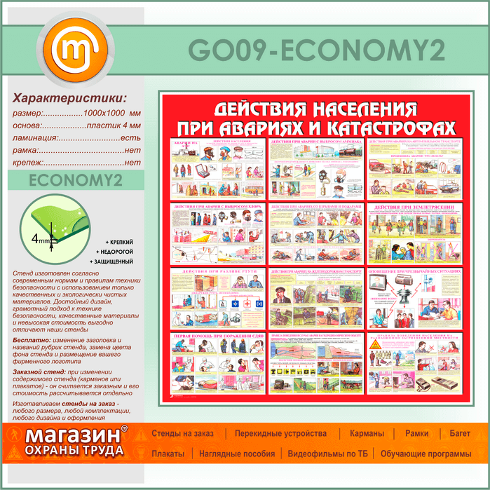 Стенд «Действия населения при авариях и катастрофах» (GO-09-ECONOMY2) в Магнитогорске купить