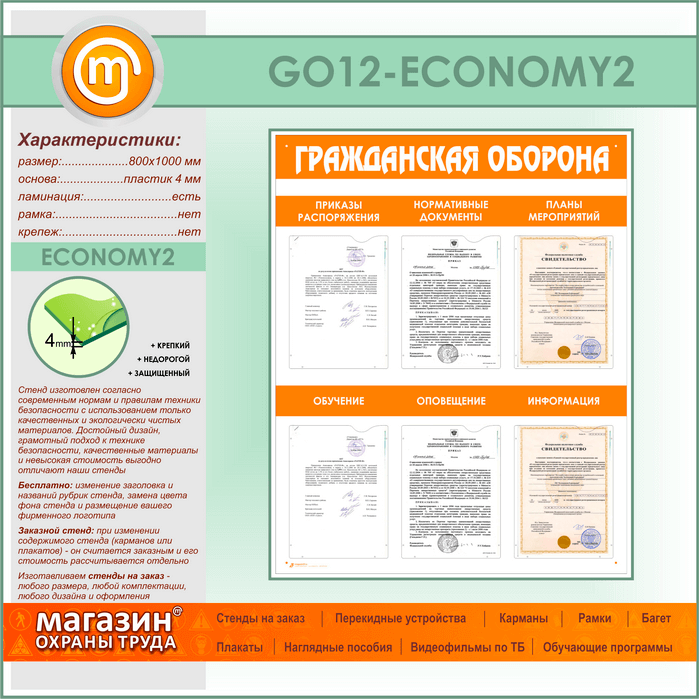 Стенд «Гражданская оборона» с 6 плоскими карманами (GO-12-ECONOMY2) в Магнитогорске купить