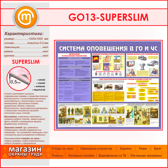 Стенд «Система оповещения в ГО и ЧС» (GO-13-SUPERSLIM) в Магнитогорске купить