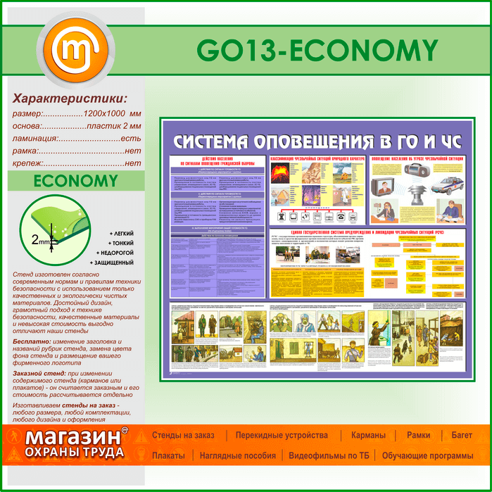 Стенд «Система оповещения в ГО и ЧС» (GO-13-ECONOMY) в Магнитогорске купить