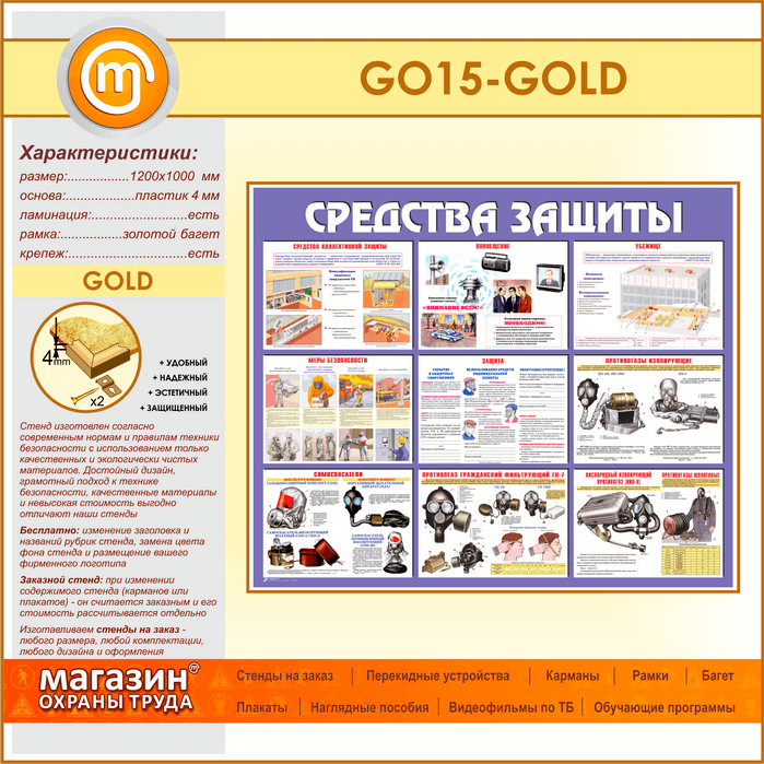 Стенд «Средства защиты» (GO-15-GOLD) в Магнитогорске купить