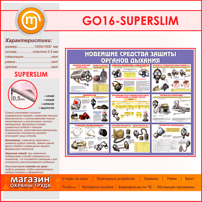 Стенд «Новейшие средства защиты органов дыхания» (GO-16-SUPERSLIM) в Магнитогорске купить