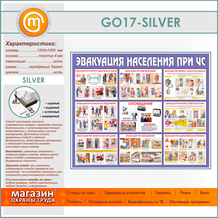 Стенд «Эвакуация населения при ЧС» (GO-17-SILVER) в Магнитогорске купить