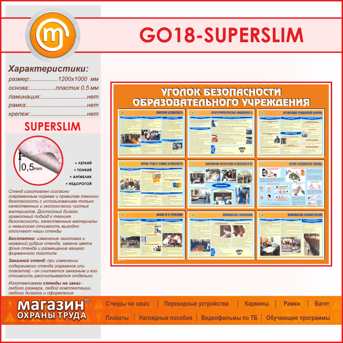 Стенд «Уголок безопасности образовательного учреждения» (GO-18-SUPERSLIM) в Магнитогорске купить