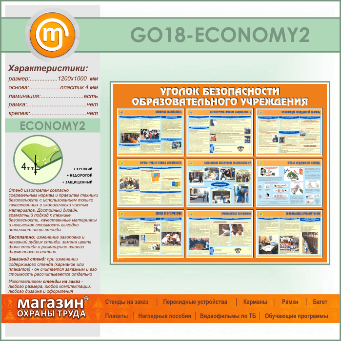 Стенд «Уголок безопасности образовательного учреждения» (GO-18-ECONOMY2) в Магнитогорске купить