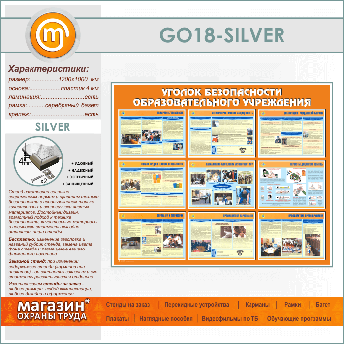 Стенд «Уголок безопасности образовательного учреждения» (GO-18-SILVER) в Магнитогорске купить