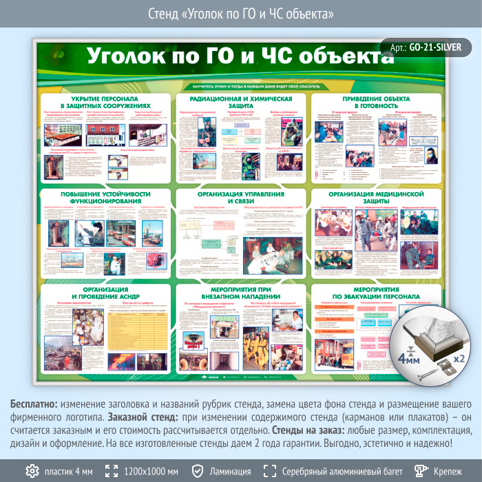 Стенд «Уголок по ГО и ЧС объекта» (GO-21-SILVER) в Магнитогорске купить
