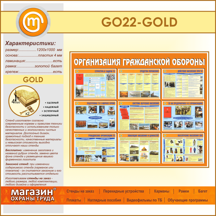 Стенд «Организация гражданской обороны» (GO-22-GOLD) в Магнитогорске купить