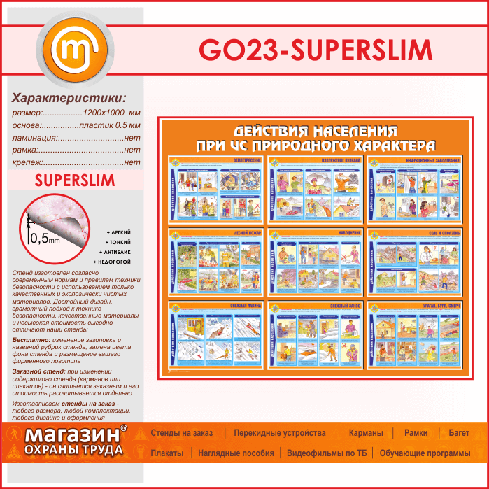 Стенд «Действия населения при ЧС природного характера» (GO-23-SUPERSLIM) в Магнитогорске купить