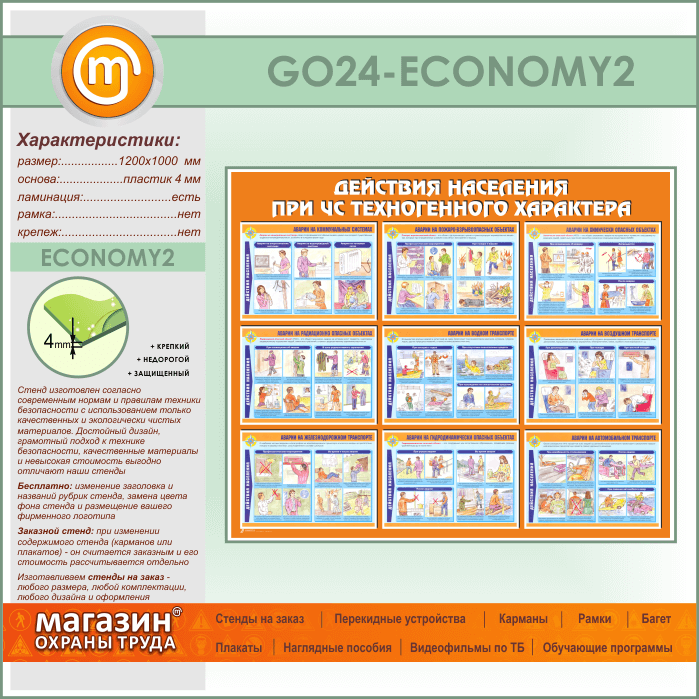 Стенд «Действия населения при ЧС техногенного характера» (GO-24-ECONOMY2) в Магнитогорске купить