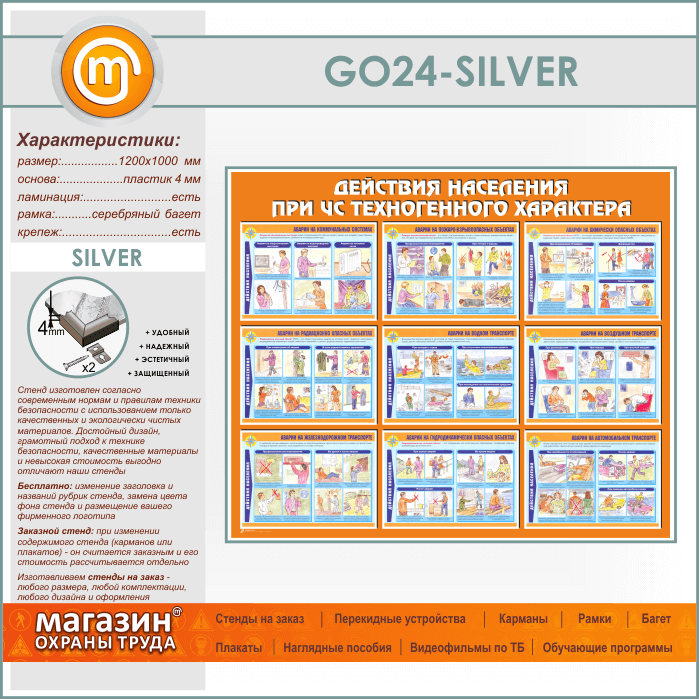 Стенд «Действия населения при ЧС техногенного характера» (GO-24-SILVER) в Магнитогорске купить