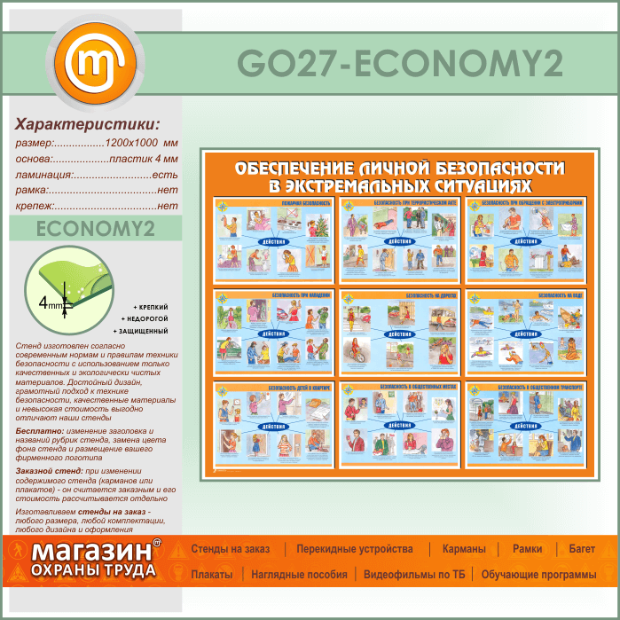 Стенд «Обеспечение личной безопасности в экстремальных ситуациях» (GO-27-ECONOMY2) в Магнитогорске купить
