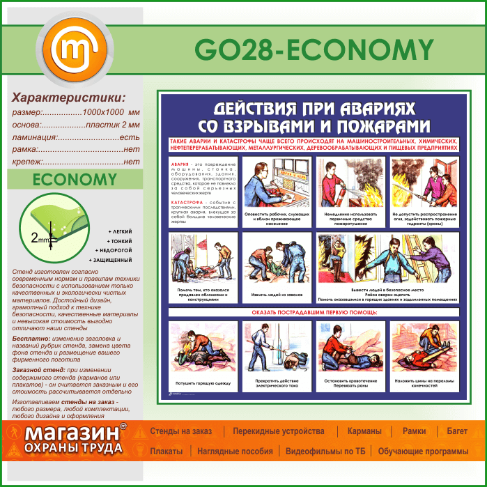 Стенд «Действия при авариях со взрывами и пожарами» (GO-28-ECONOMY) в Магнитогорске купить