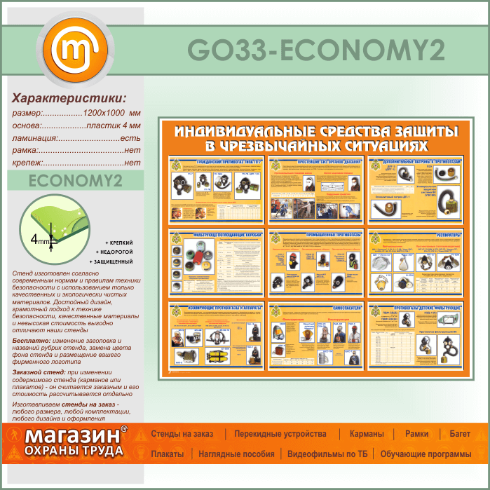 Стенд «Индивидуальные средства защиты в чрезвычайных ситуациях» (GO-33-ECONOMY2) в Магнитогорске купить