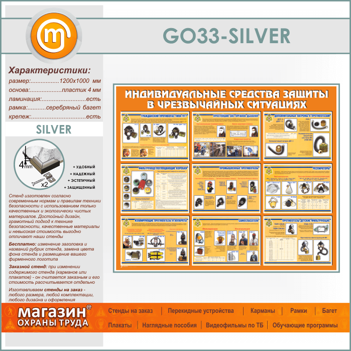 Стенд «Индивидуальные средства защиты в чрезвычайных ситуациях» (GO-33-SILVER) в Магнитогорске купить