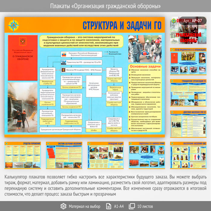 Плакаты «Организация гражданской обороны» (АР-07, 10 листов) в Магнитогорске купить