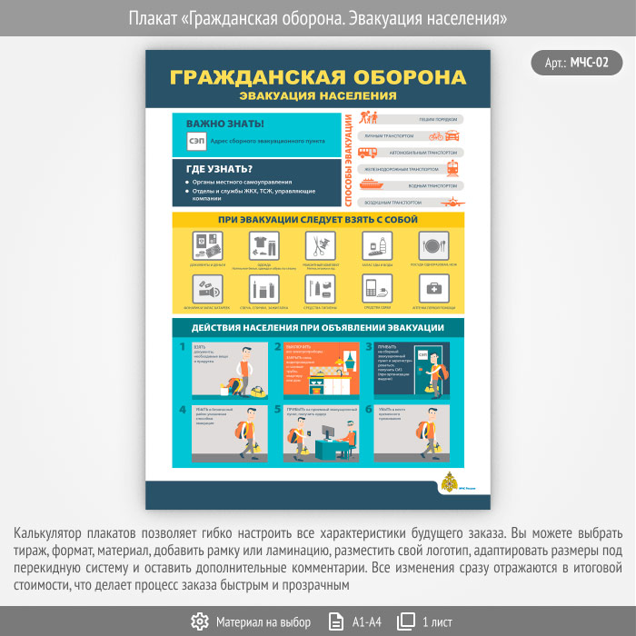 Плакат «Гражданская оборона. Эвакуация населения» (МЧС-02, 1 лист) в Магнитогорске купить