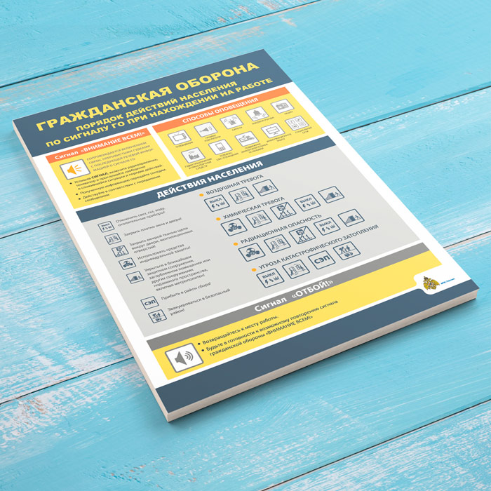 Плакат «Гражданская оборона. Порядок действия населения по сигналу ГО при нахождении на работе» (МЧС-09, 1 лист) в Магнитогорске купить