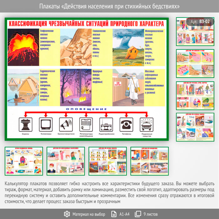 Плакаты «Действия населения при стихийных бедствиях» (ВЗ-02, 9 листов) в Магнитогорске купить