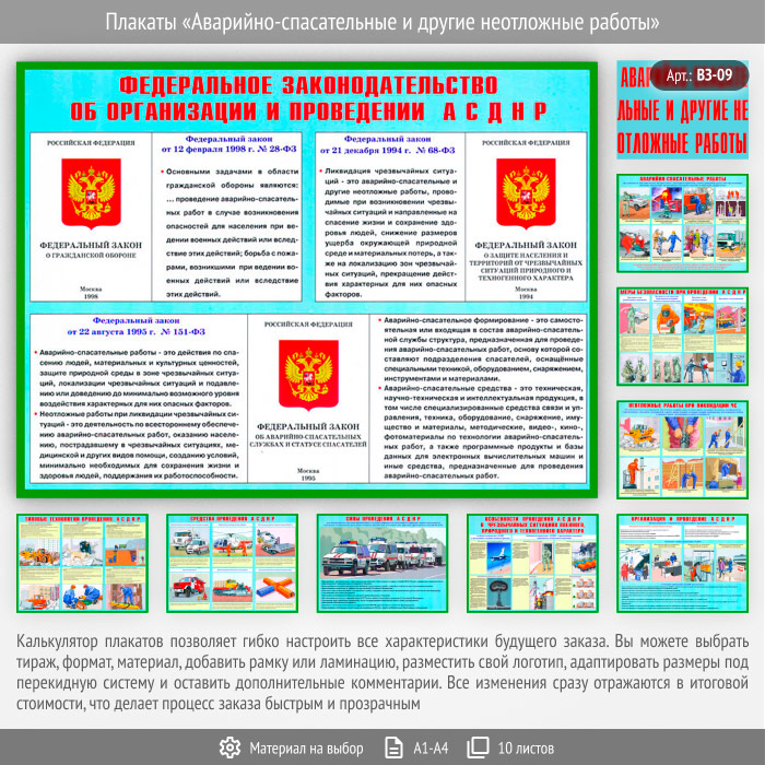 Плакаты «Аварийно-спасательные и другие неотложные работы» (ВЗ-09, 9 листов) в Магнитогорске купить