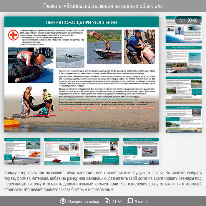 Плакаты «Безопасность людей на водных объектах» (ВЗ-16, 9 листов) в Магнитогорске купить