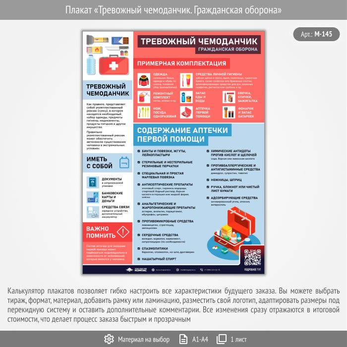 Плакат «Тревожный чемоданчик. Гражданская оборона» с QR (М-145, 1 лист) в Магнитогорске купить