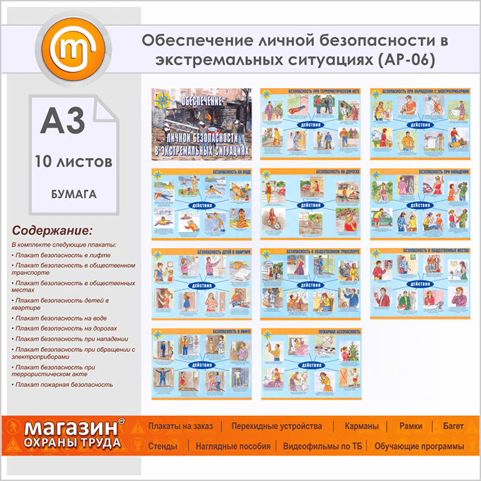 Плакаты «Обеспечение личной безопасности в экстремальных ситуациях» (АР-06, бумага, А3, 10 листов) в Магнитогорске купить