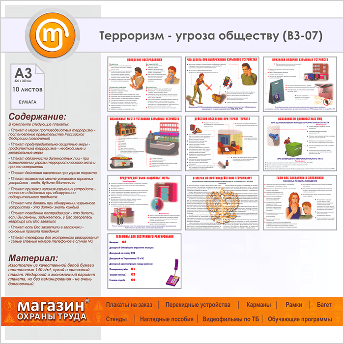Плакаты «Терроризм - угроза обществу» (ВЗ-07, бумага, А3, 10 листов) в Магнитогорске купить