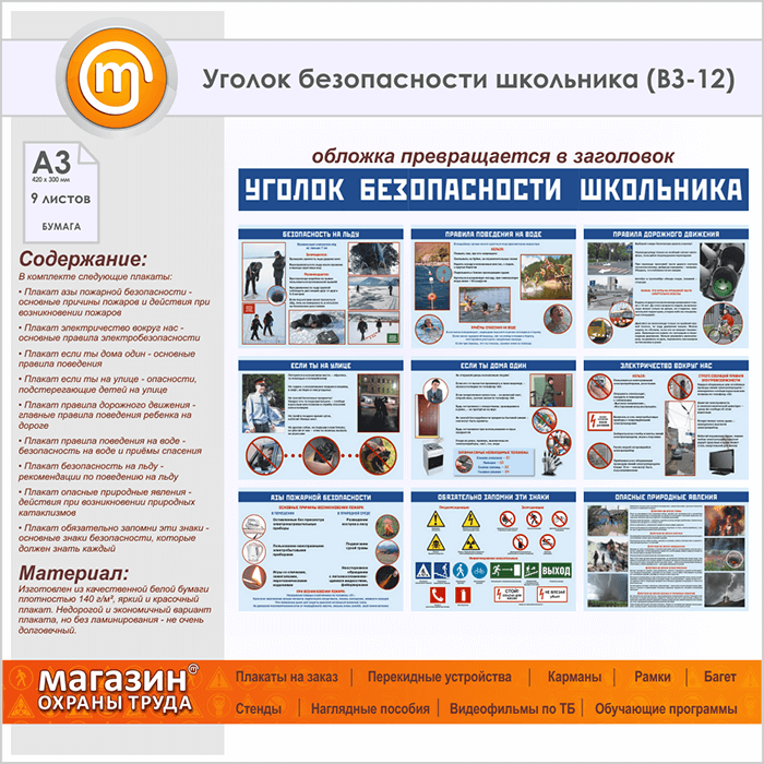 Плакаты «Уголок безопасности школьника» (ВЗ-12, бумага, А3, 10 листов) в Магнитогорске купить