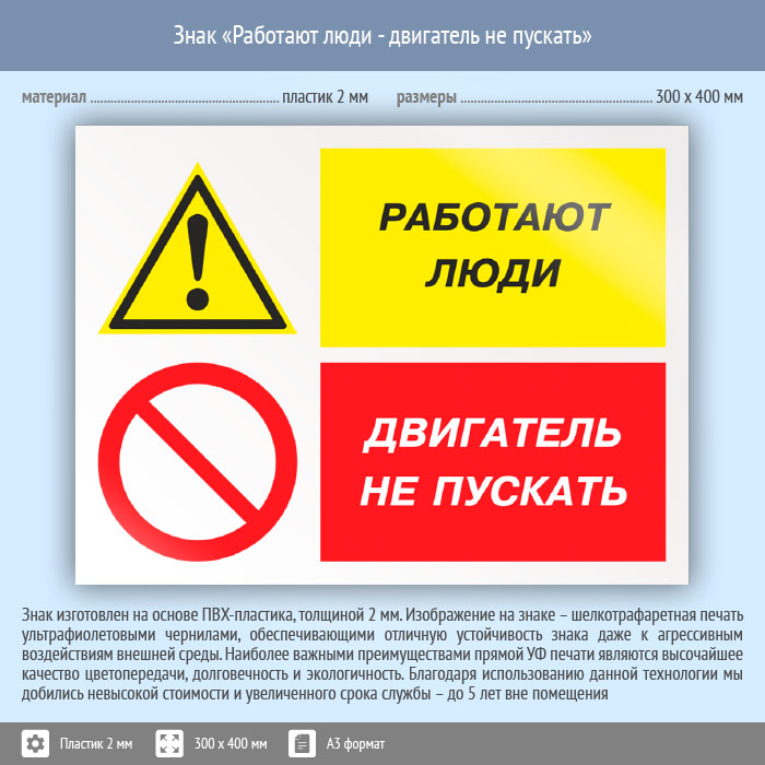 Знак «Работают люди - двигатель не пускать», КЗ-82 (пластик, 400х300 мм) в Магнитогорске купить