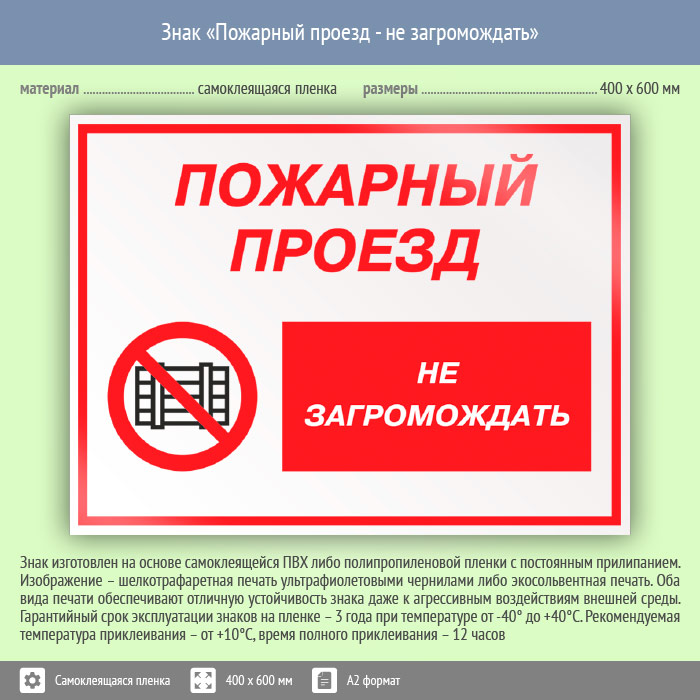 Знак «Пожарный проезд - не загромождать», КЗ-67 (пленка, 600х400 мм) в Магнитогорске купить