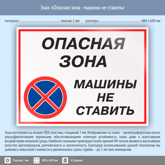 Знак «Опасная зона - машины не ставить», КЗ-32 (пластик, 600х400 мм) в Магнитогорске купить