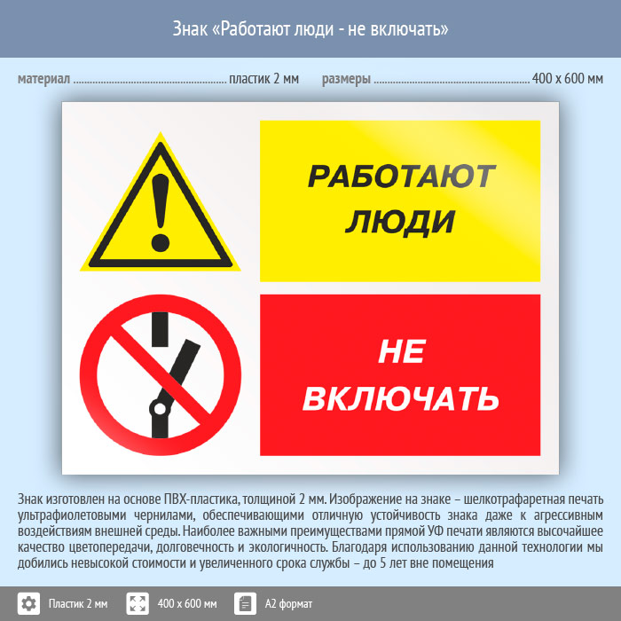 Знак «Работают люди - не включать», КЗ-83 (пластик, 600х400 мм) в Магнитогорске купить