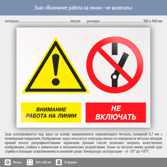 Знак «Внимание работа на линии - не включать», КЗ-16 (металл, 400х300 мм) в Магнитогорске купить