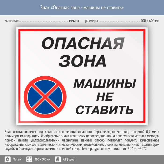 Знак «Опасная зона - машины не ставить», КЗ-32 (металл, 600х400 мм) в Магнитогорске купить